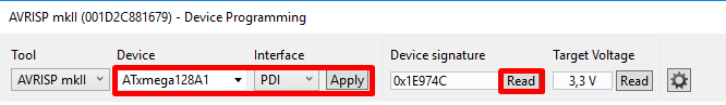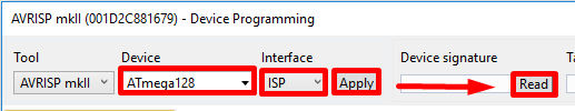Выбираем Atmega 128 и читаем подпись: