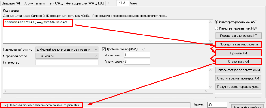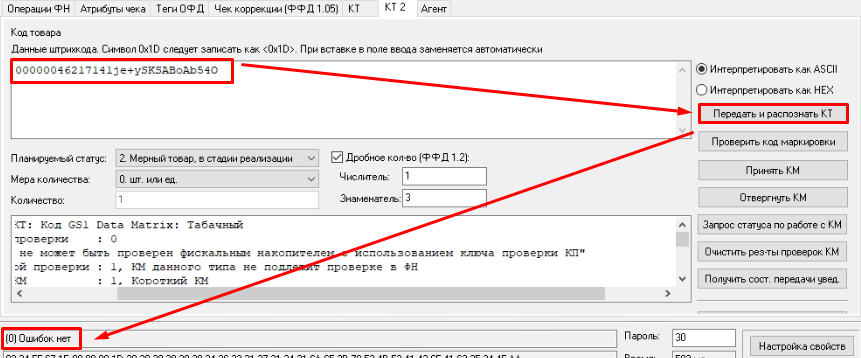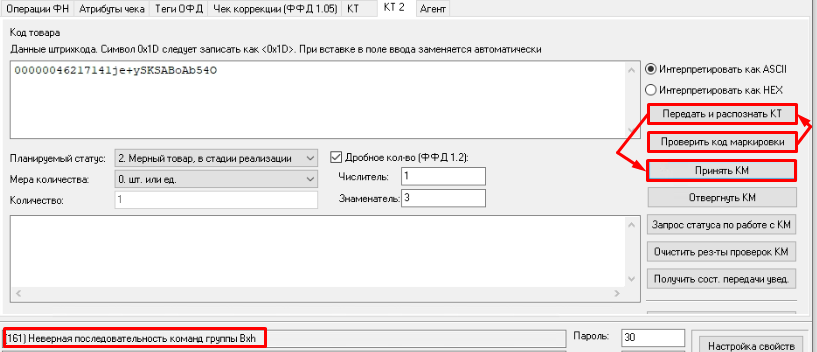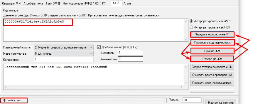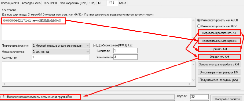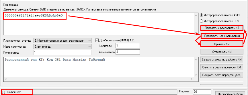 "Проверить код маркировки" и"Передать и распознать КТ"