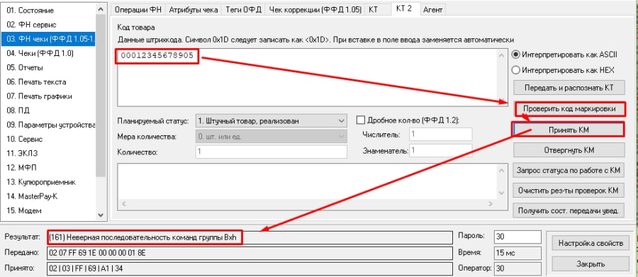 Первый, самый простой - использовать только команду "Принять и распознать КТ" (FNSendItemBarcide). С ним проблем нет.
