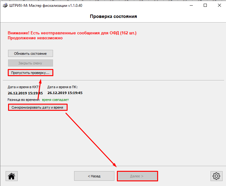 Синхронизируем дату и время и пропускаем проверку если кнопка "Далее" не активна: