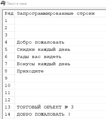 Чтобы он печатался в шапке нужно зайти "Настройка свойств" - "Таблицы" - "5.Текст в чеке" - В четвертом поле ввести: